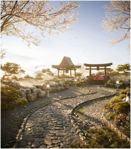 Bao quanh trung tâm trị liệu khoáng nóng là những tổ hợp thác nước, được bao quanh bởi những dòng suối và thác nước tự nhiên, bởi những vườn Nhật và suối cá koi, vườn hoa anh đào.